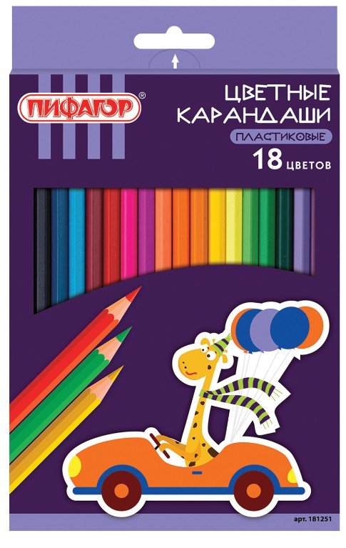 Карандаши цветные ПИФАГОР "ЖИРАФ", 18 цветов, шестигранные, 181251