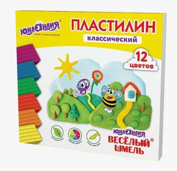 Пластилин классический ЮНЛАНДИЯ "ВЕСЁЛЫЙ ШМЕЛЬ", 12 цветов, 240 грамм, стек, ВЫСШЕЕ КАЧЕСТВО, 106431