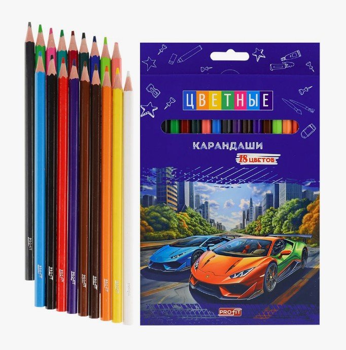 TM "Profit"Карандаши цв пл.2М,набор,гекс.18цв. АВТО (КЦ-4704) гриф.d=2,8мм,в к/к