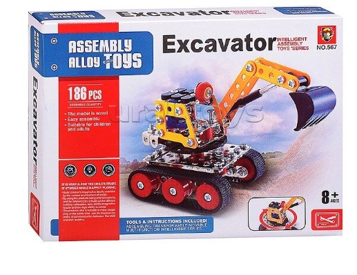 - Конструктор металлический "Экскаватор" (186 дет.) в коробке 567