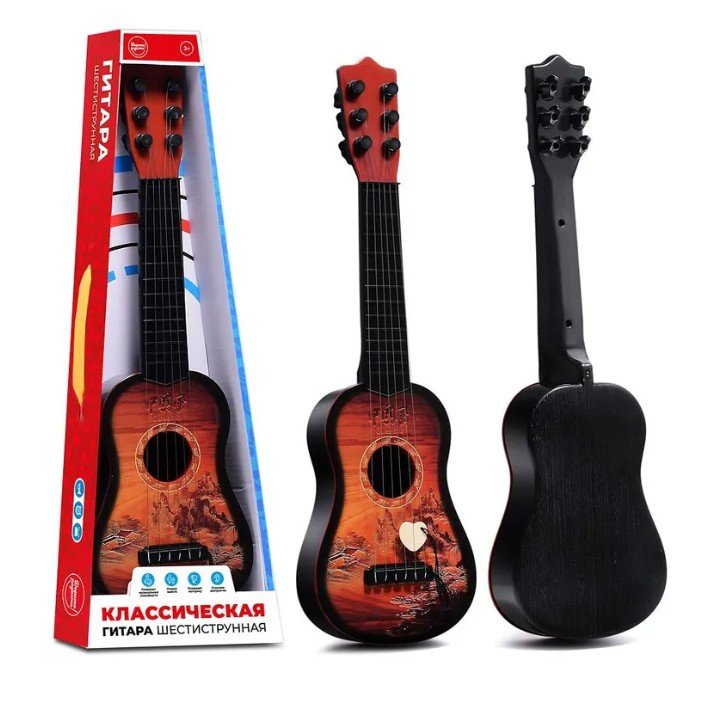 • Размеры гитары: 13х4.5х42.5 см. • 6 металлических струн. • Регулируемое натяжение струн. • Пластиковый медиатор в комплекте. • Материал: пластик. • Соответствует требованиям безопасности продукции. • Для детей от 3-х лет. Обратите внимание! Это игрушечная гитара, она не является профессиональным музыкальным инструментом.