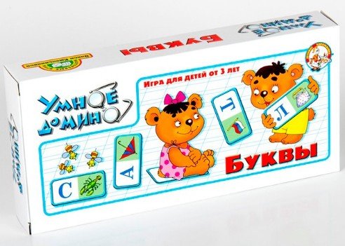 В отличие от обычного домино, умное домино состоит из 36 карточек, каждая из них разделена на 2 части. На одной половинке написана буква алфавита, а на другой изображена картинка. Каждая картинка соответствует определенным словам.