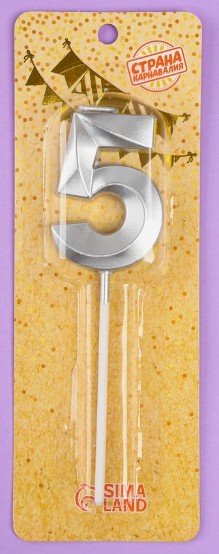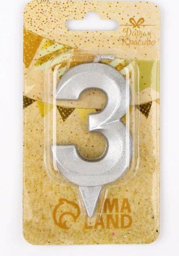 Свеча в торт «Цифра 3», серебряная, 6.5 см 5928497