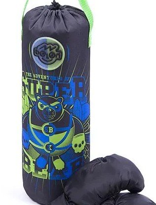 Набор для бокса: Груша боксерская (цилиндр 40смхØ15см) с перчаткми. Принт "Медведь". Цвет зеленый-с