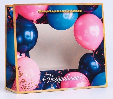 Пакет подарочный с окном «Поздравляю», 25×10×22 см 10787349